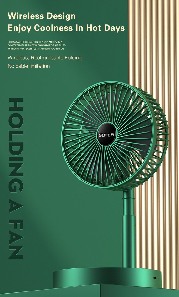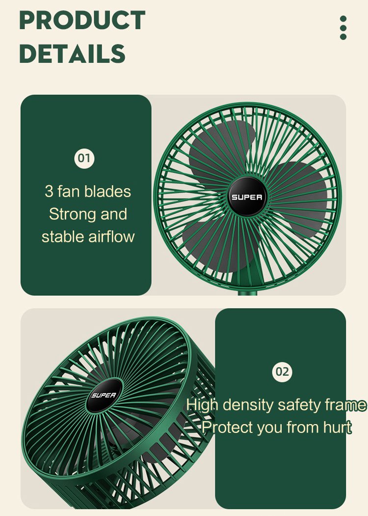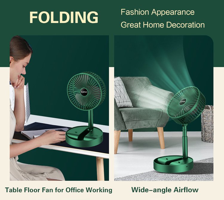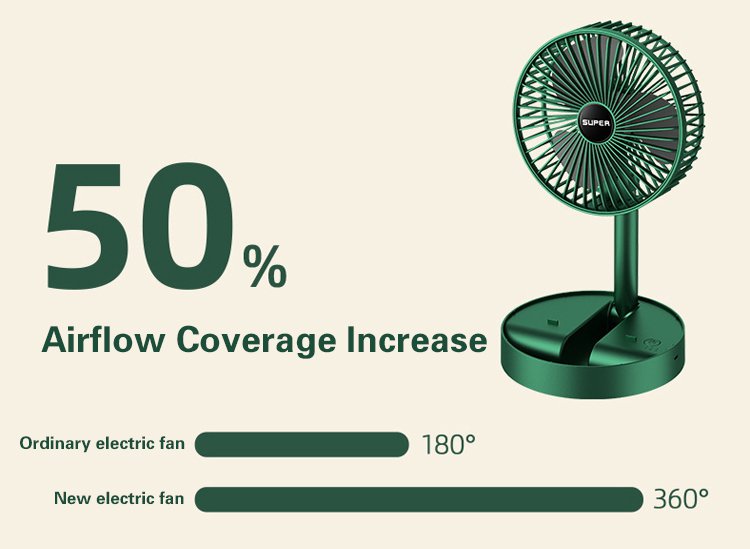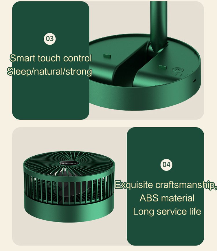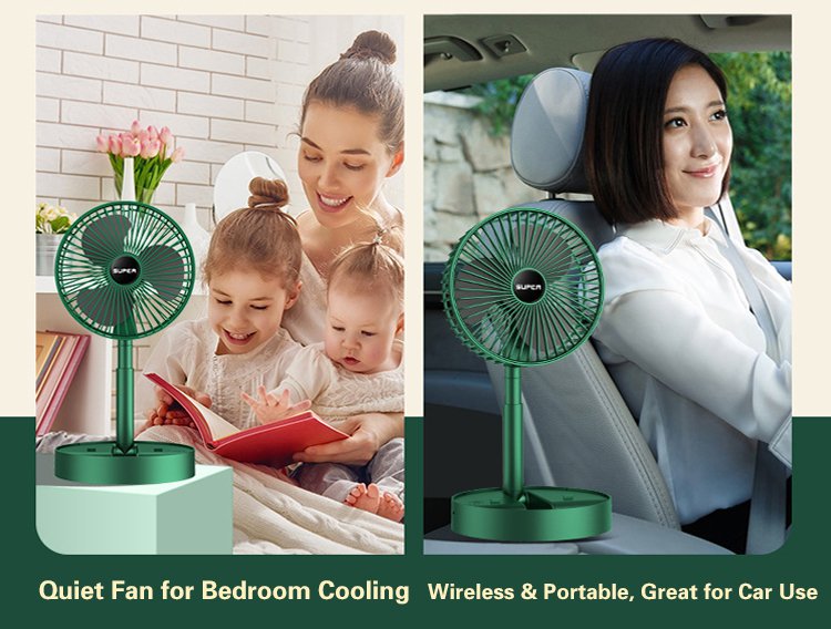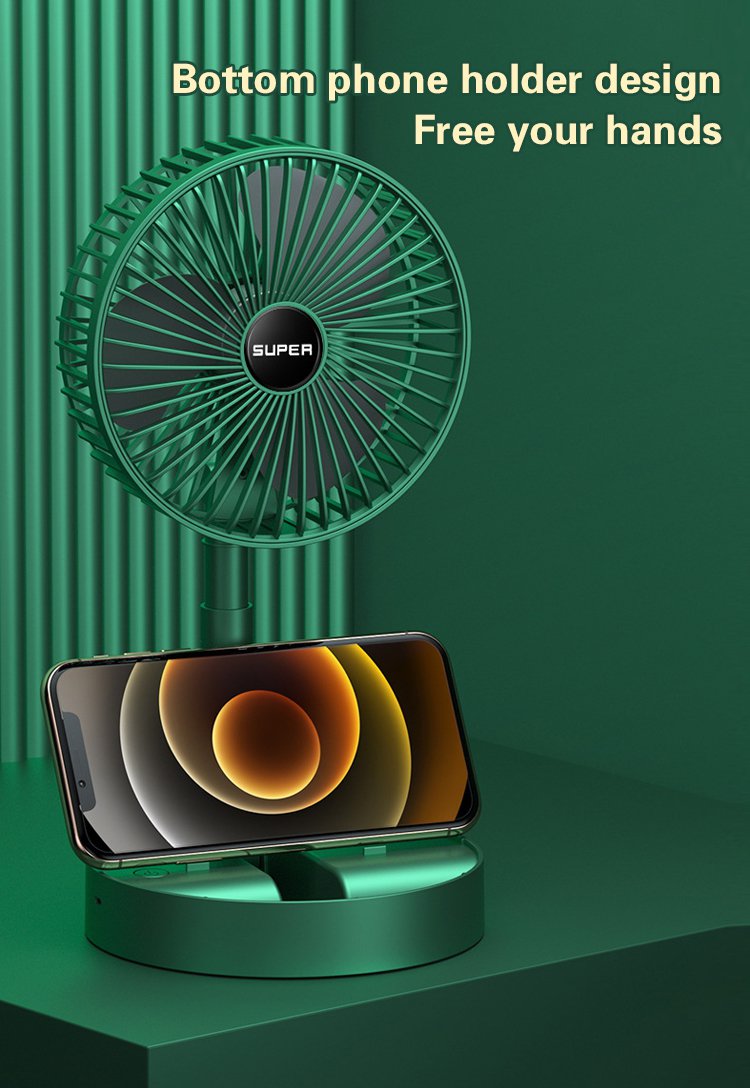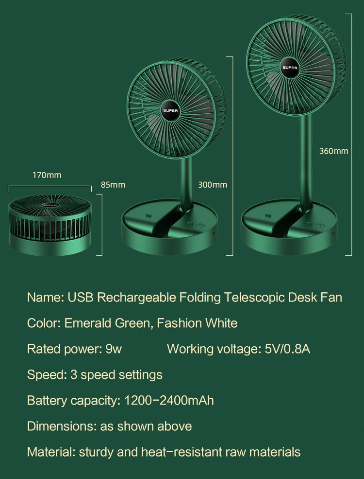 -Silent folding adjustable fan, 1200mah large capacity battery, 6-8 hours battery life, with USB charging