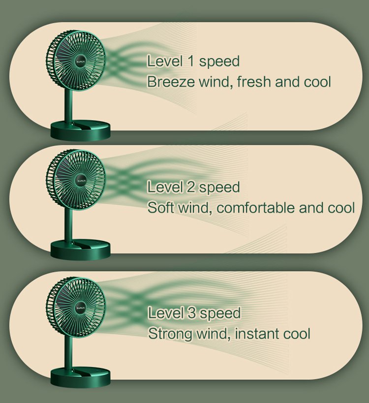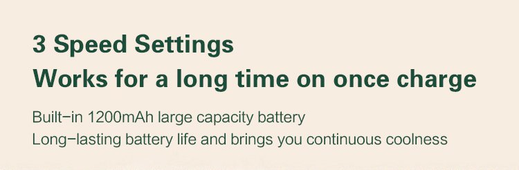 -Simple touch operation, 3-speed wind power adjustable, single press to switch wind speed, long press to check the battery status