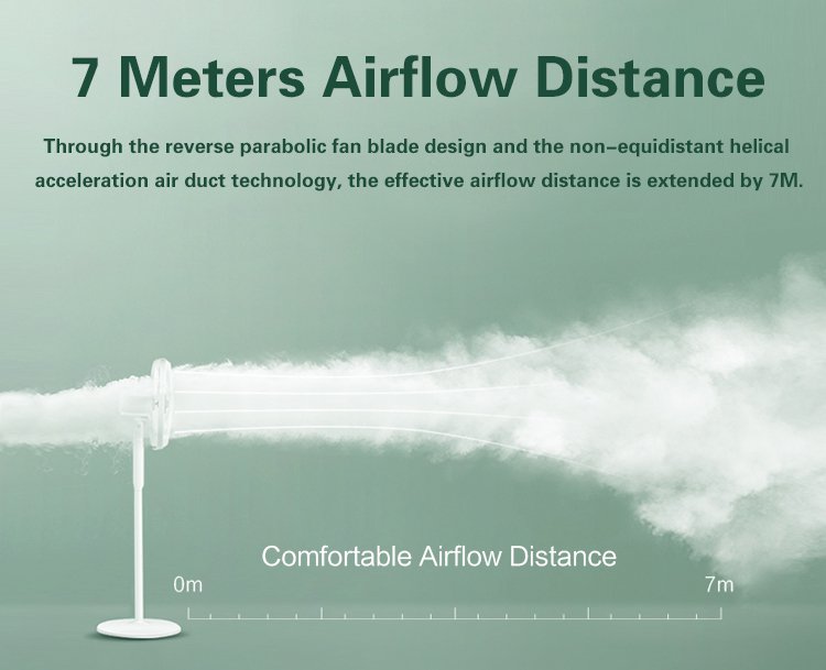 -Arc-shaped large fan blade design, strong wind, up to 4.2m/s. Variable speed brushless DC motor provides stable and strong power, simulates natural wind, low noise, low power consumption, quiet and comfortable